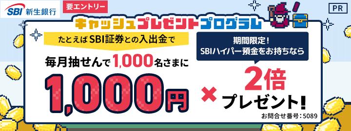 新規口座開設者限定!SBI証券連携サービスの利用などの条件達成でもれなく5,000円キャッシュプレゼント!(要エントリー)その他条件の達成で今なら最大22,000円プレゼント!