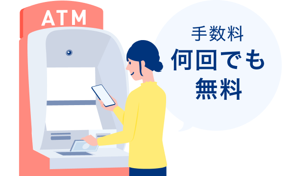 - ※1 セブン銀行ATM・イーネットATM・ローソン銀行ATM・イオン銀行ATM・PatSat(パッとサッと)・VIEW ALTTE(ビューアルッテ)をご利用の場合は、無料です。ゆうちょ銀行ATM(ファミリーマートに設置のATMも含む)・全都市銀行ATM・三菱UFJ信託銀行ATM・三井住友信託銀行ATM・商工中金ATMをご利用の場合、1回あたり110円(税込)です。