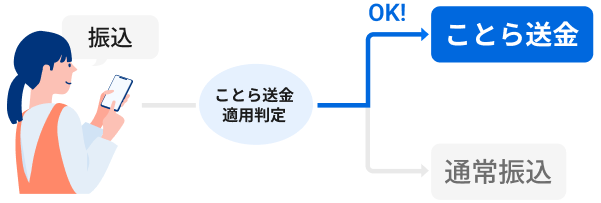 1回あたり最大10万円までの個人宛送金なら、ことら送金を使い何度でも送金手数料無料かつ24時間365日リアルタイムで送金できます。振込操作をすれば、条件に当てはまった場合は自動でことら送金が適用されます。